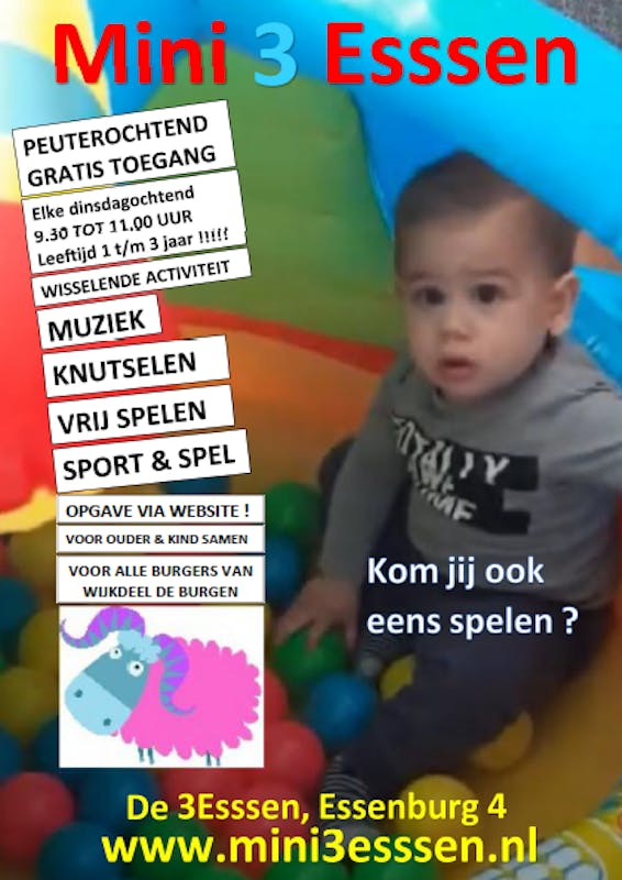 Deze activiteit is vrij te bezoeken omdat we een grotere ruimte mogen gebruiken, dus ook wanneer u normaal gesproken niet bij de Mini3Esssen ochtenden aanwezig bent bent u van harte welkom. Opgave kan via de website: https://mini3essen.jouwweb.nl/inschrijfformulier