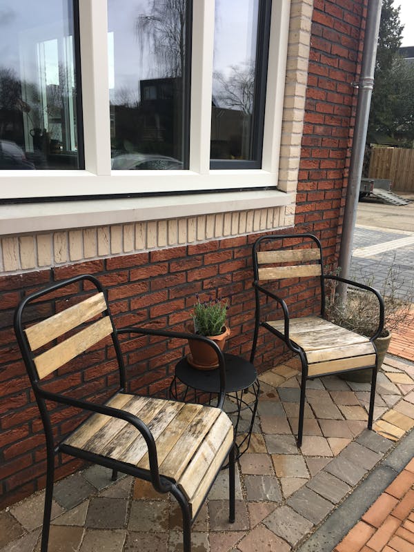Ons nieuwe straatje wordt steeds gezelliger. In navolging van de overburen heb ik ook twee stoeltjes en een tafeltje neergezet. Wat doe jij om je straat gezelliger te maken?