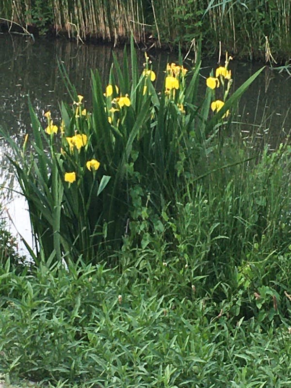 Vlakbij ons huis staat langs de waterkant deze plant met met mooie gele bloemen. Wie weet hoe deze plant heet?