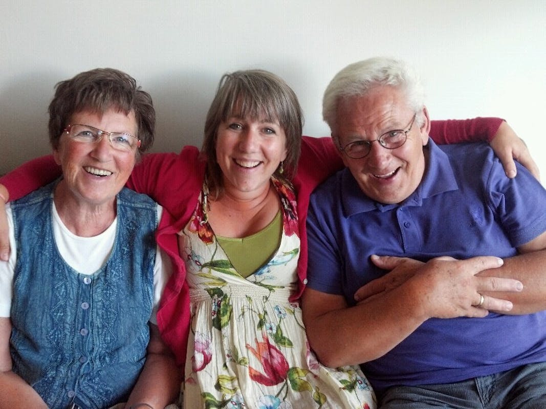 Op de foto zie je mij met mijn vader en moeder. De foto is alweer een aantal jaren oud. Dit was op een verjaardag, maar inmiddels komen mijn ouders niet zo vaak meer ver weg en buiten de deur. Ze wonen in Zeeland en ik ben zo dankbaar dat ze buren hebben en betrokken mensen uit hun kerk die naar hen omzien! Iemand die ze naar het ziekenhuis rijdt, iemand die ze dag en nacht mogen bellen, iemand die ze helpt met de administratie enz.