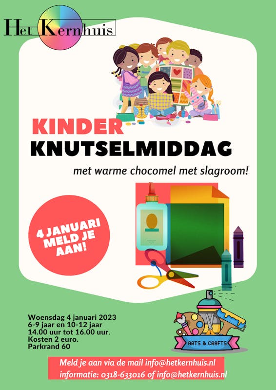We gaan in de kerstvakantie knutselen in het Kernhuis! Kom jij ook? We gaan knutselen gezamenlijk met een de groep van 6-9 jaar en 10-12 jaar.