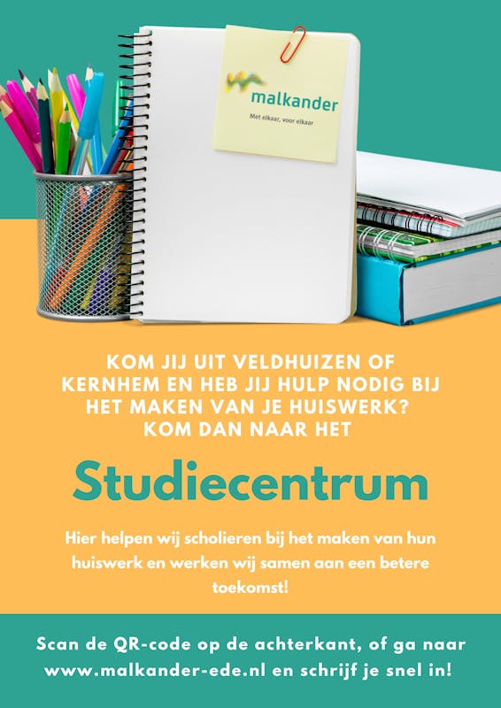 Kom jij uit Veldhuizen of Kernhem en heb je hulp nodig bij het maken van je huiswerk? Kom dan naar het Studiecentrum. Hier helpen we scholieren bij het maken van hun huiswerk en werken we samen aan een betere toekomst.