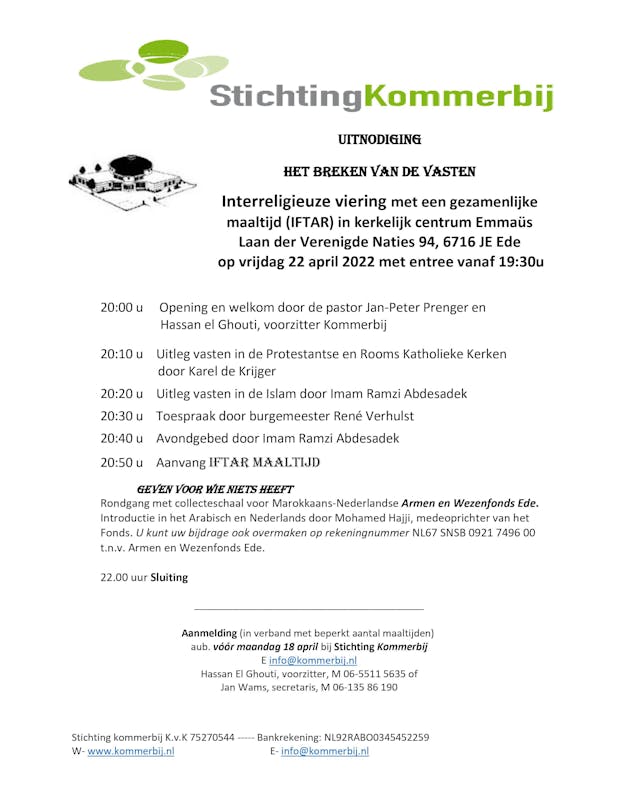 20:00 u Opening en welkom door de pastor Jan-Peter Prenger en Hassan el Ghouti, voorzitter Kommerbij